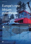 MINING FOCuSEurope’s newlithium powerhouseKokkola has become Finland’s largest port serving the country’s mining industry, according to a recent study conducted by the Geological Survey of Finland.Although the port has been handling materials and equipment for mining and metallurgical industries for over 50 years, the study states that Kokkola is poised to become an increasingly important transport hub for mining concerns, highlighting its ability to remain open for business throughout the year – including winter months when many other port operations are closed by ice. It also highlighted the port’s ability to handle any type of cargo through its three harbours and close proximity by road to major mining areas in northern and eastern Finland.20PORT OF KOKKOLA HANDBOOK & DIRECTORYIn recent years the mining industryIt has been known since the early 1960s that the area around Kokkola might yield huge amounts of lithium deposits. Lithium is a lightweight, reactive and durable metal with a wide range of uses including in batteries for mobile devices, in theOver the years a series of test drillings has taken place and Finnish mining and exploration company Keliber will shortly begin open pit quarrying operations on a site close to the municipalities of Kokkola and neighbouring Kaustinen. No environmental hazards are foreseen.has been one of the few sectors making significant investments in Finland, according to the country’s Ministry of Employment and the Economy. Mining has long traditions in Finland and a revival of the country’s mining operations has created new technology companies and spurred the growth of small and medium-size commercial organisations.manufacture of cordless tools and in aircraft parts. But the most obvious application for lithium is in electric cars. In less than two decades the development of lithium battery technology has brought electric vehicles to the fore, with the increasing likelihood that they will eventually supplant petrol and diesel-fuelled vehicles entirely.