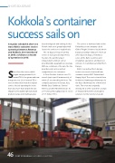SHORT-SEA SERVICEKokkola’s container success sails onA regular scheduled short-sea trans-Baltic container service operating between Antwerp and Kokkola, first introduced in 2008, celebrates a decade Sof operation in 2018.household goods and clothing for the Finnish chain store group Halpa-Halli Oy use the service on a regular basis. The six-day port-to-port weekly service is now operated by X-Press Feeders, the world’s largest independent common carrier providing wide geographical coverage. With no containers of its own, the line provides only service and not competition to its customers.The service is marketed and sold in Finland by a new company called Global Freight Solutions Oy Ltd, which began operating in May 2017 from an office based in Espoo, Helsinki, to serve all the Baltic countries and strengthen operations and business ventures in Scandinavia and Northern Europe.ince then the service, which began carrying around 3,000 annual TEUs, has grown and nowX-Press Feeders charters over 110 vessels (up to post-Panamax size), of which 25 are owned by the lines. The company operates in Europe, Asia, Middle East, Caribbean, Central America and the Mediterranean. Its 2016 annual throughput was in excess of 5.6 million TEUs.Baltic Sea and northern Europe routes use vessels chartered from common-carriers MSC Finland and Hapag-Lloyd. The service travels from Kokkola to Hamburg and Antwerp via the Bay of Bothnia ports of Kemi and Oulu. The route was originally introduced to offer customers a range of integrated maritime and logistics solutions for the transfer of goodstransports over 20,000 annual TEUs – over six times more than the original service. Vessels operating the route have also more than doubled in size. Shippers of heavylift, high-value bulk products, large and small bags, plus46 PORT OF KOKKOLA HANDBOOK & DIRECTORY